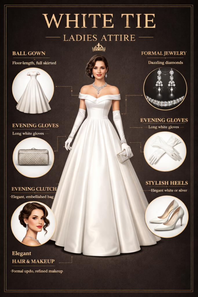 Tento typ dress code je nejformálnější a očekávejte ho na pozvánkách na nejspolečenštější  večerní akce, jako jsou plesy v opeře či slavnostní ceremoniály v nejvyšších kruzích. Běžně se s tímto typem dress code nesetkáme, o to důležitější je ho dodržet.
