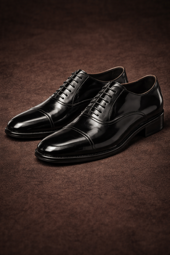 Ideální obuví jsou černé lakýrky typu Oxford.